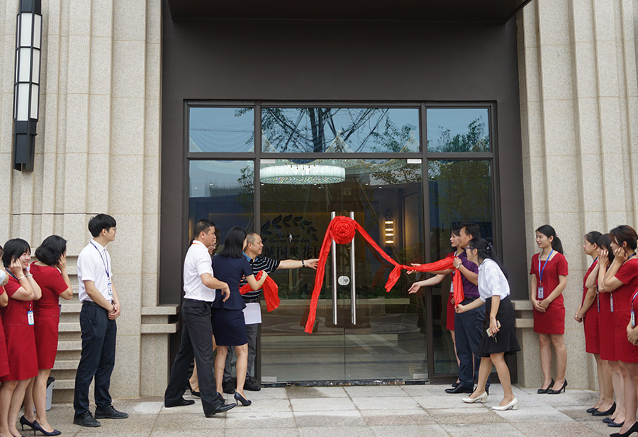 在隆隆的禮炮聲中,周道林、鄧仁友共同為營銷中心喬遷揭牌!