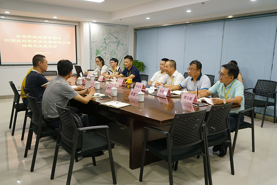 7月29日,陽朔縣陽宏投資發(fā)展有限公司總經理朱毅率領導班子一行四人到新城投資集團,就融資、項目建設等進行交流學習,并到公司建設項目現場進行了參觀。桂林市臨桂新區(qū)管理委員會副主任文杰,新城投資集團董事長、總經理周道林,副總經理鄧仁友、鄭善華、張新悅,新城投資集團工會主席譚力源等參加座談。