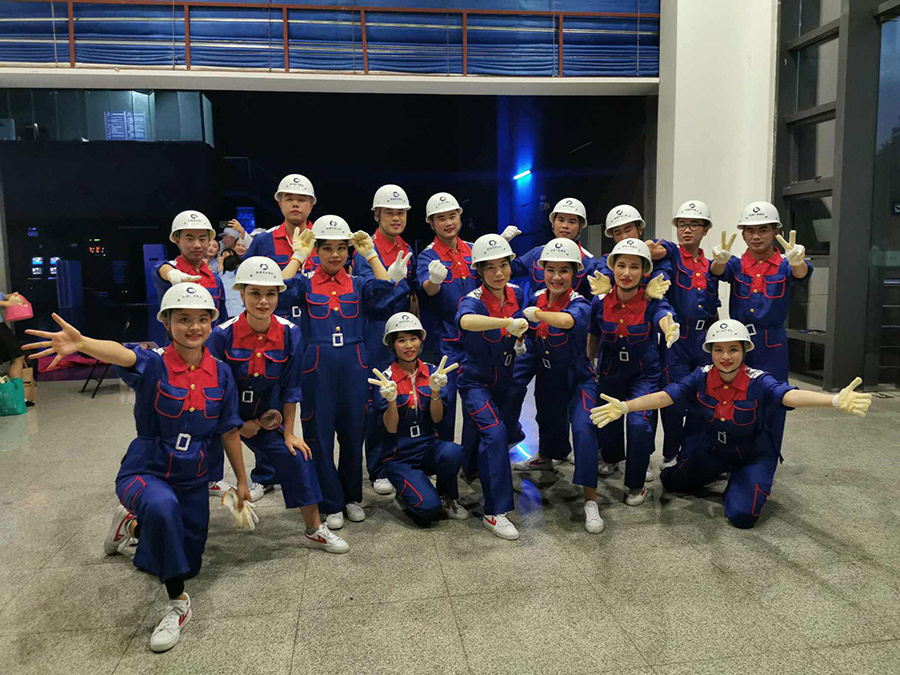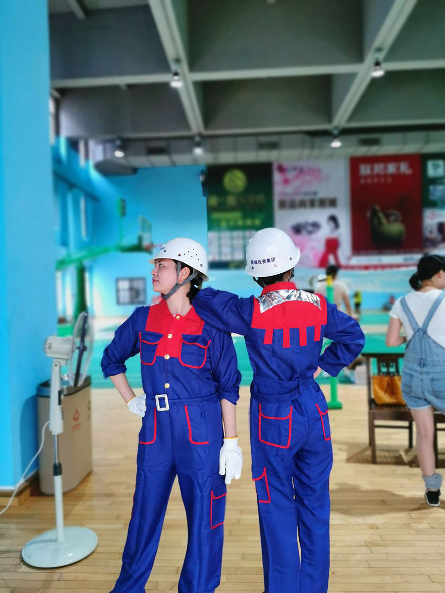 本次參演的演員們來自集團(tuán)公司及各個子公司,有動作不協(xié)調(diào)的工程技術(shù)理工男,有只擅埋頭碼字的行政文員,有物業(yè)安保小哥,有房產(chǎn)銷售精英等等,在這個節(jié)目里,他們都是新區(qū)建設(shè)者的代表和縮影。沒有舞臺經(jīng)驗的他們,靠著一遍遍的艱苦練習(xí),一個月下來,每個人的膝蓋都是烏青發(fā)紫,終于將動作做到了整齊劃一。演員吳春妍同志剛休完產(chǎn)假,家里孩子還在哺乳中,為了支持她的排練演出,孩子爸爸常常幫把孩子送到在排練中的媽媽手上,以節(jié)約她回家的時間。許多演員為了排練,推掉了孩子暑假的活動安排,犧牲了假期。一些演員是白班夜班輪班制的,為了參加統(tǒng)一排練,調(diào)班連續(xù)工作。