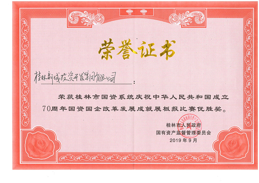新城投資集團(tuán)黨總支選送的展板報(bào)作品在市國資委主辦桂林市國資系統(tǒng)慶祝中華人民共和國成立70周年國資國企改革發(fā)展成就展板報(bào)比賽中脫穎而出。9月21日晚,新城投資集團(tuán)受邀參加市國資委展板報(bào)比賽頒獎儀式,工會主席譚力源代表集團(tuán)公司出席儀式并領(lǐng)獎。