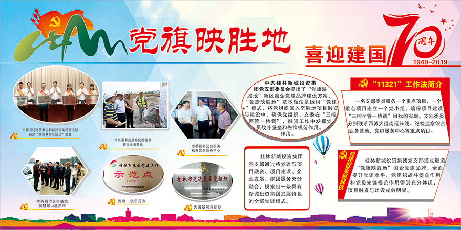 新城投資集團(tuán)黨總支精心組織選送慶祝中華人民共和國成立70周年國資國企改革發(fā)展成就展板報(bào)比賽參賽作品。展板作品充分展現(xiàn)了新城投資集團(tuán)黨總支在“黨旗映勝地”黨建品牌打造過程中,不忘初心,牢記使命,鍛造“真抓實(shí)干強(qiáng)擔(dān)當(dāng),全力以赴推項(xiàng)目”的項(xiàng)目建設(shè)精神;集團(tuán)黨總支充分運(yùn)用“全域黨建管控新模式”,創(chuàng)立“11321”工作法解決工地實(shí)際難題;在紀(jì)檢監(jiān)察綜合業(yè)務(wù)基地率先采用EPC建設(shè)模式,引進(jìn)BIM和石墨烯路燈等新技術(shù),極大提高了項(xiàng)目建設(shè)效率,譜寫了“新區(qū)騰飛,黨建新篇”。