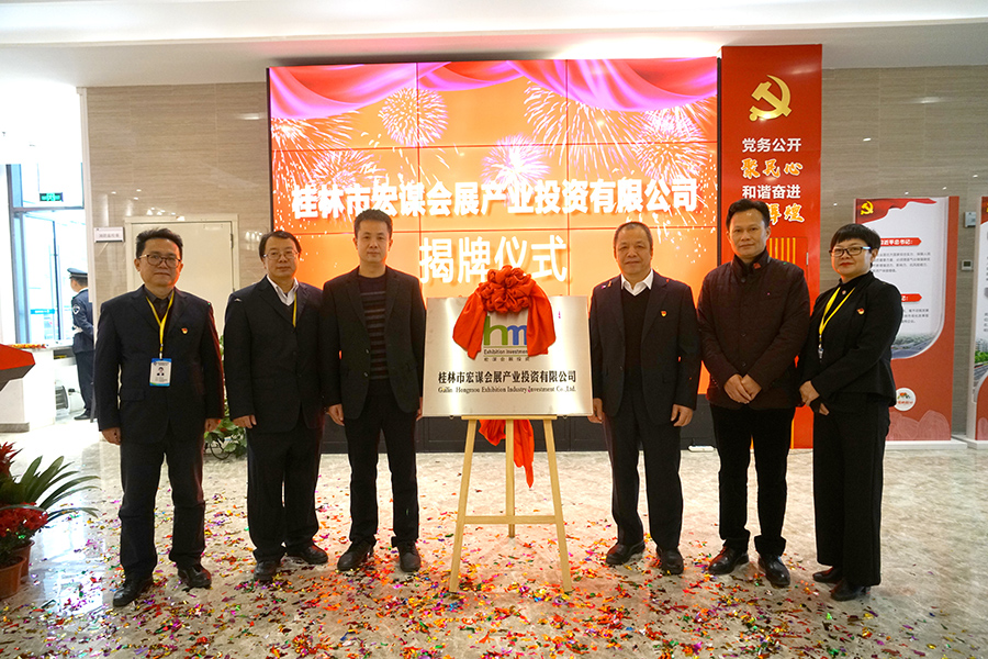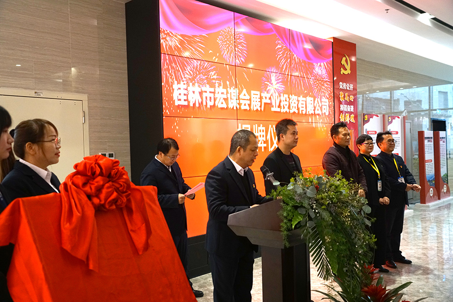12月24日上午,在新城投資集團(tuán)一樓舉行了桂林市宏謀會展投資有限公司(以下簡稱宏謀會展公司)揭牌成立。臨桂新區(qū)工委委員、管委會副主任文杰,新城投資集團(tuán)黨支部書記、董事長周道林揭牌并致辭?;顒佑尚鲁峭顿Y集團(tuán)副總經(jīng)理鄭善華主持,集團(tuán)主管以上干部職工參加。