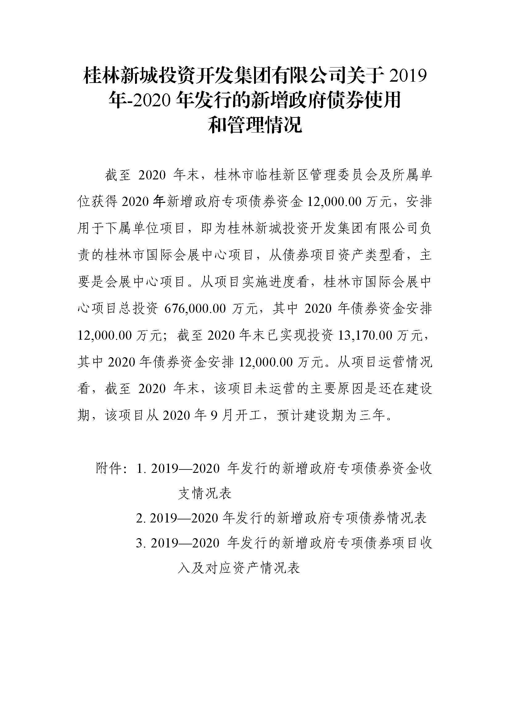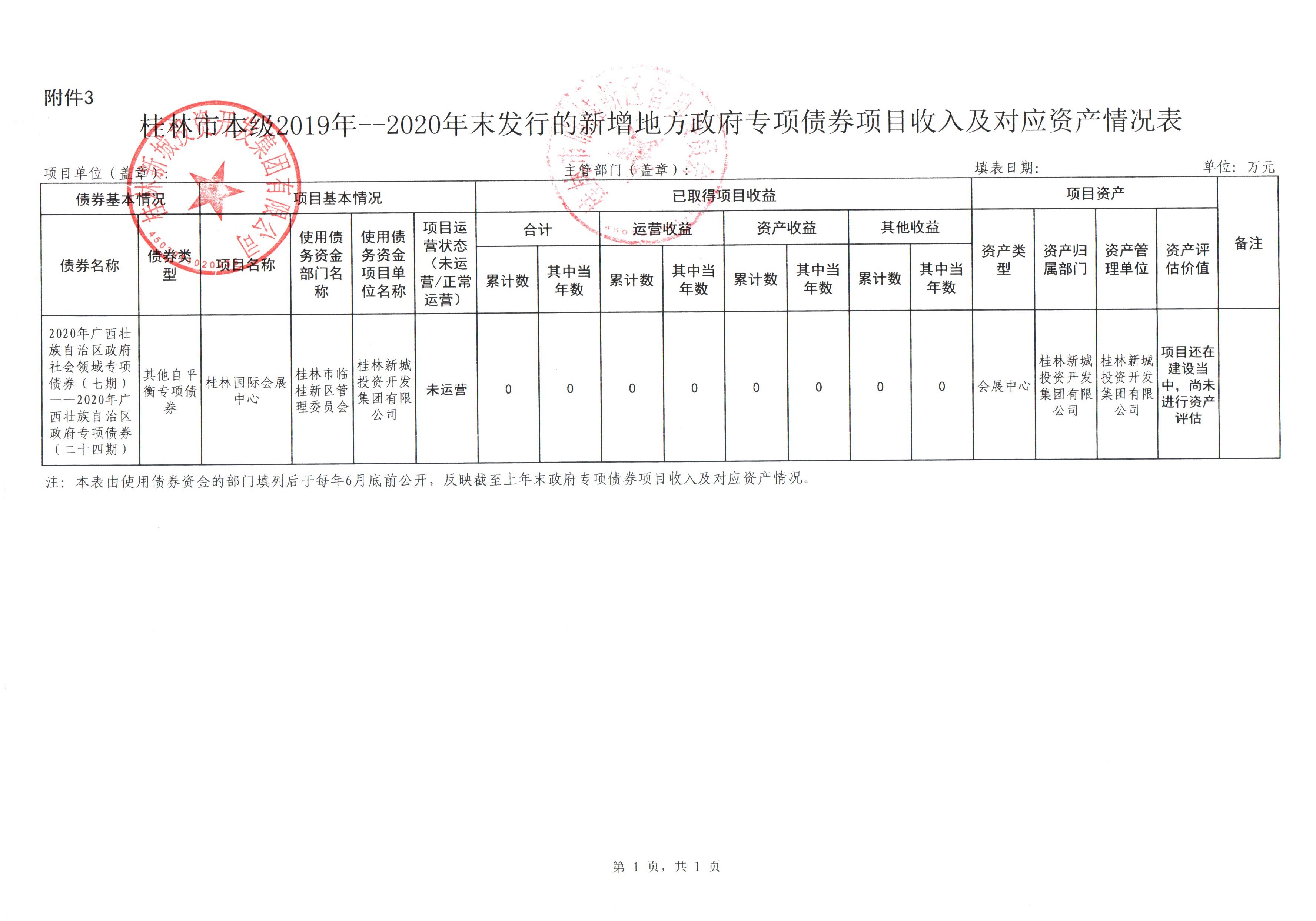 桂林市本級(jí)2019年--2020年末發(fā)行的新增地方政府專項(xiàng)債券情況表(臨桂新區(qū))