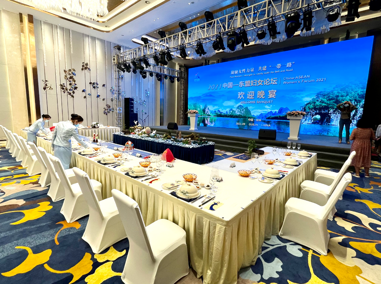 9月12日,“凝聚女性力量 共建一帶一路”2021中國-東盟婦女論壇開幕式在廣西桂林新城投資集團旗下宏謀大酒店舉行。
