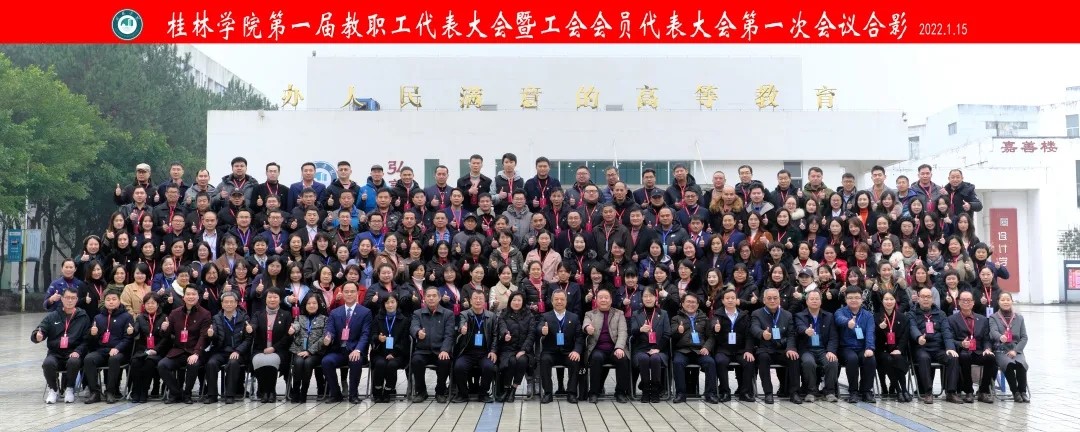 2022年1月15日上午,桂林學(xué)院第一屆教職工代表大會暨工會會員代表大會第一次會議在學(xué)校弘善講堂召開。市總工會黨組成員、副主席、教育工會主席莫曦媛,市教育工會常務(wù)副主席陳東,新城投資集團(tuán)黨總支書記、董事長、桂林學(xué)院董事長周道林,新城投資集團(tuán)副總經(jīng)理、桂林學(xué)院副董事長鄭善華出席會議。桂林學(xué)院校長楊樹喆等大會主席團(tuán)成員在主席臺就座。桂林學(xué)院黨組織負(fù)責(zé)人唐文紅主持會議。正式代表、特邀代表、列席代表近150人參加大會。