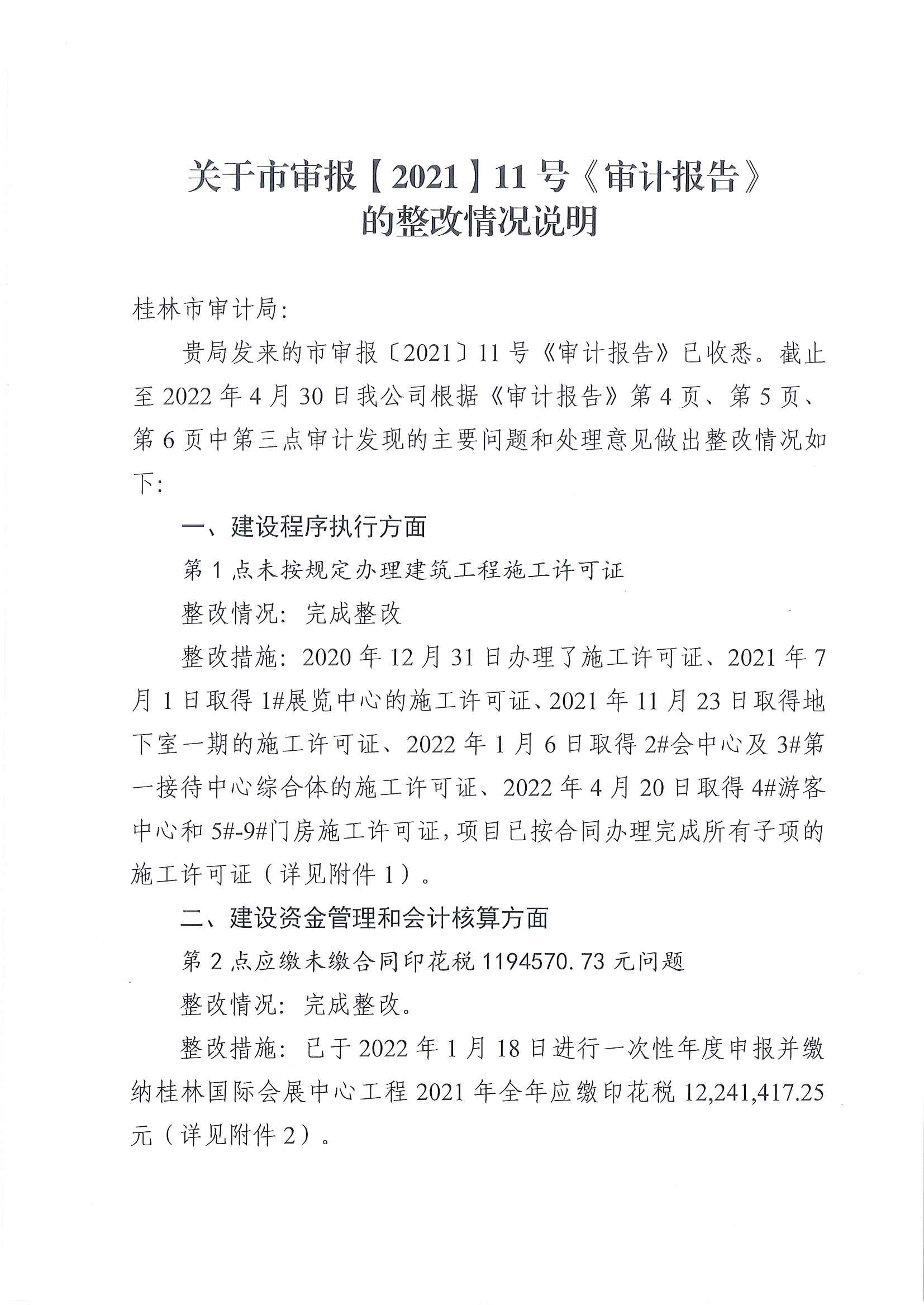 關于市審報【2021】11號《審計報告》的整改情況說明