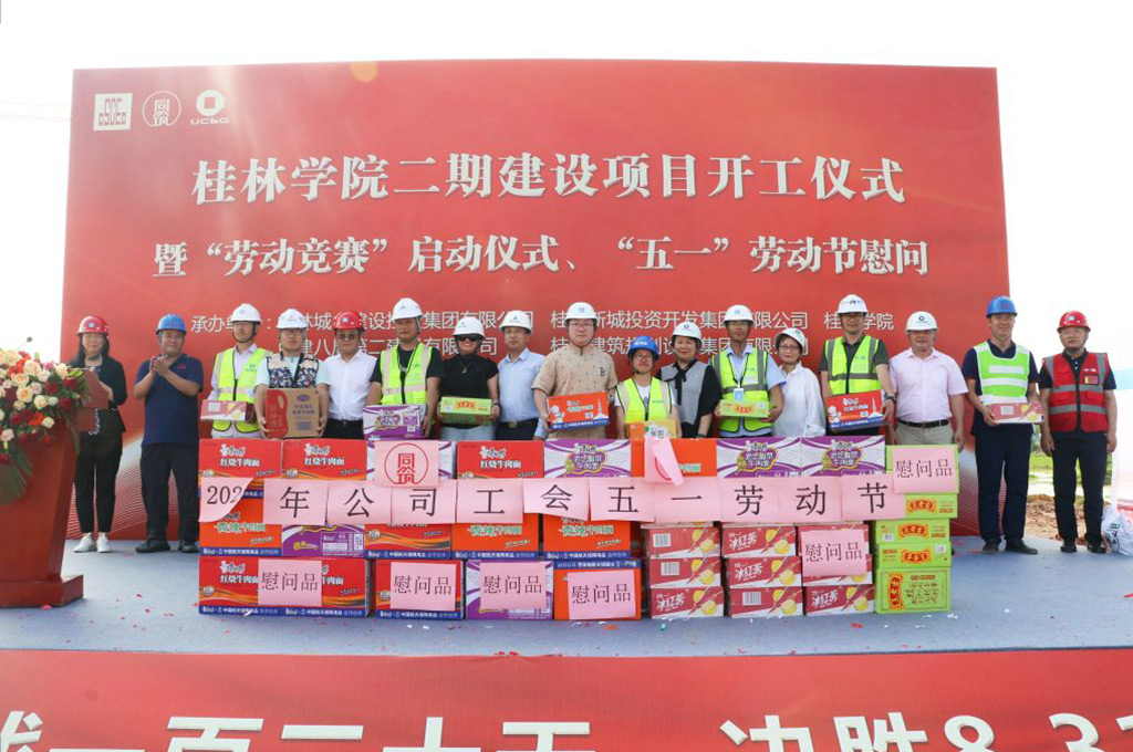 4月30日下午,桂林城鄉(xiāng)建設(shè)控股集團(tuán)有限公司下屬桂林學(xué)院二期建設(shè)項(xiàng)目開工儀式暨“勞動競賽”啟動儀式、“五一”勞動節(jié)慰問活動在桂林學(xué)院施工現(xiàn)場隆重舉行。城建集團(tuán)領(lǐng)導(dǎo)肖笛波、諸葛長、粟義春、黃江訓(xùn)、董潤秀、王巍、鄭善華,新城投集團(tuán)領(lǐng)導(dǎo)朱毅、譚力源、劉敏,桂林建筑規(guī)劃設(shè)計(jì)集團(tuán)有限公司黨委書記陸衛(wèi)堅(jiān),中建八局第二公司廣西公司領(lǐng)導(dǎo)王紹舉、徐海銀、柳云岳,桂林學(xué)院領(lǐng)導(dǎo)楊樹喆、唐文紅、劉文革、楊慶慶、何玲、蔣毅等共同出席儀式活動。儀式活動由桂林學(xué)院二期建設(shè)項(xiàng)目部總負(fù)責(zé)人、新城投集團(tuán)黨委委員、副總經(jīng)理葉青旺主持。
