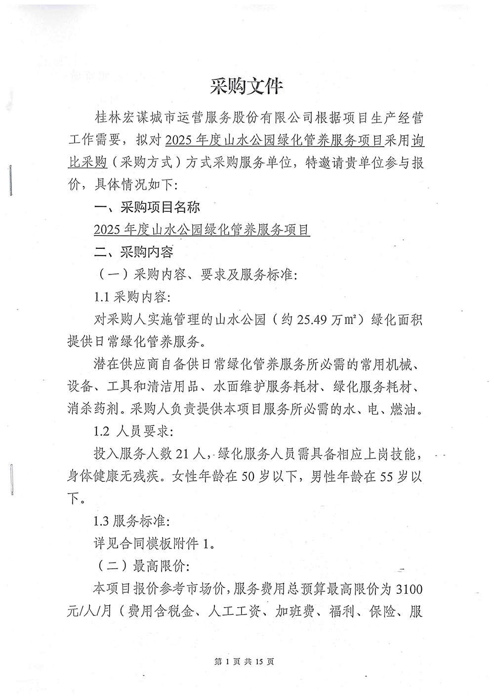 2025年度山水公園綠化管養(yǎng)服務(wù)項(xiàng)目采購(gòu)文件