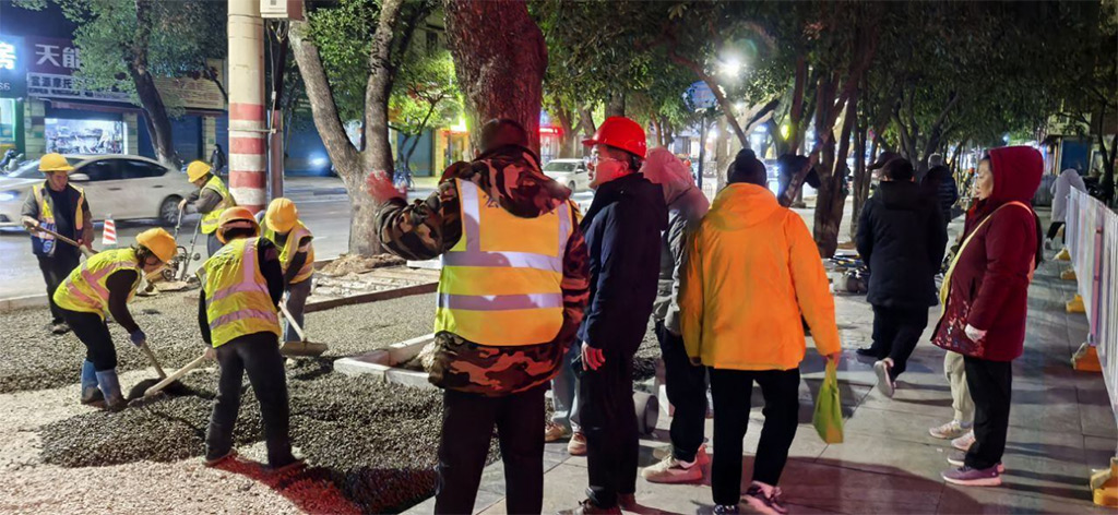 為確保蘆笛小學(xué)教學(xué)活動(dòng)正常進(jìn)行,最大限度降低對(duì)周邊居民日常出行的影響,項(xiàng)目采取夜間和周末加班加點(diǎn)的工作方式,全體黨員干部職工發(fā)揚(yáng)“五加二、白加黑”的奮斗精神,爭(zhēng)分奪秒推進(jìn)工程進(jìn)度,成功在兩天內(nèi)超額完成蘆笛小學(xué)門口130多米人行道1300多平方米的透水混凝土改造任務(wù),彰顯了項(xiàng)目團(tuán)隊(duì)高效的施工能力和團(tuán)結(jié)協(xié)作的精神風(fēng)貌,充分展現(xiàn)了黨員的先鋒模范作用。