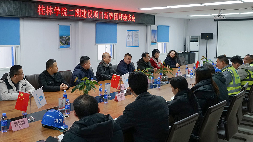 走訪結(jié)束后,在新城投集團(tuán)領(lǐng)導(dǎo)班子的陪同下,陶毅一行來到桂林學(xué)院二期建設(shè)項(xiàng)目,向全體參建人員致以新春的誠摯祝福,并與各方參建單位開展新春團(tuán)拜座談會。