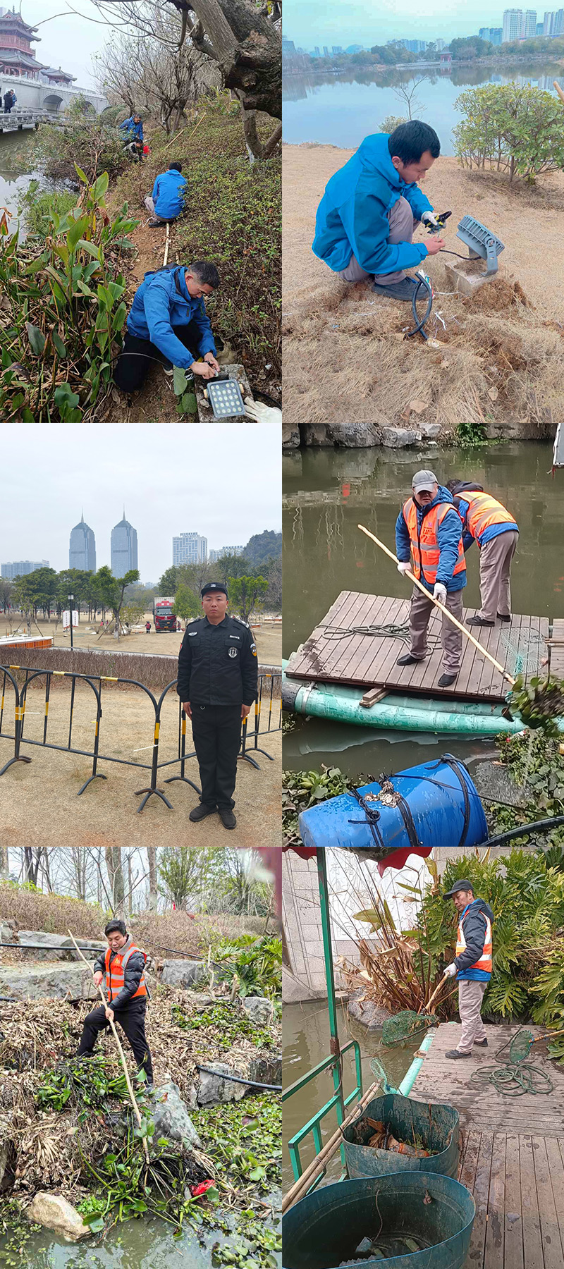 黨員同志帶頭成立工作小組,對山水公園的環(huán)境衛(wèi)生、園林綠化、水系水域、電力系統(tǒng)、照明設(shè)施等關(guān)鍵領(lǐng)域進行全面、細致的檢查與維護工作,同時,加強山水公園安保力量,加大煙花燃放點的巡查力度,安排專人對煙花組裝區(qū)域?qū)嵤﹪烂苁刈o,并全力配合三大通信運營商及其他相關(guān)部門做好用電取電工作,有效保障了活動的順利進行,確?;顒赢斎障蚴忻癯尸F(xiàn)一個安全、舒適的活動環(huán)境。