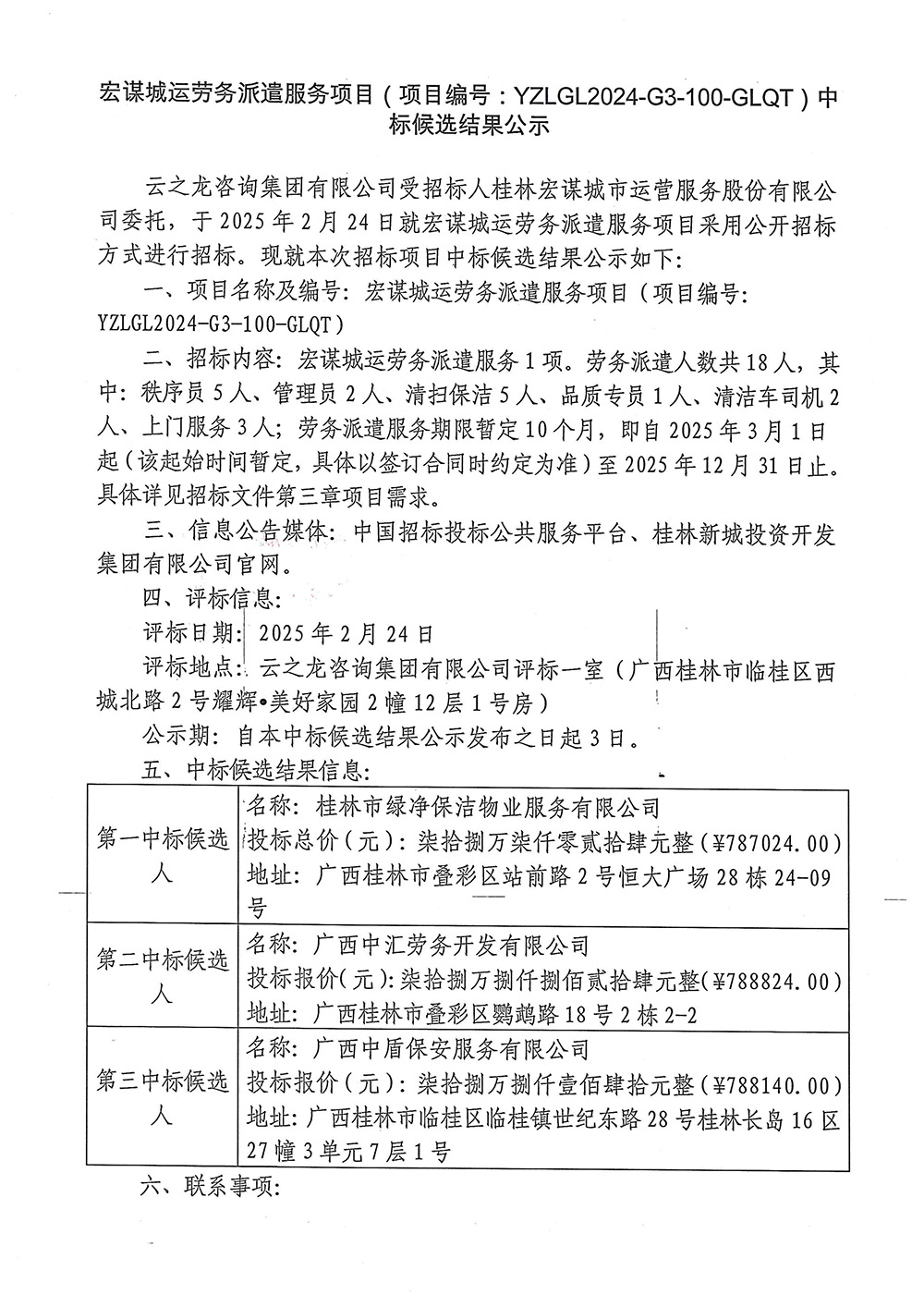 宏謀城運(yùn)勞務(wù)派遣服務(wù)項目(項目編號:YZLGL2024-G3-100-GLQT)中標(biāo)候選結(jié)果公示