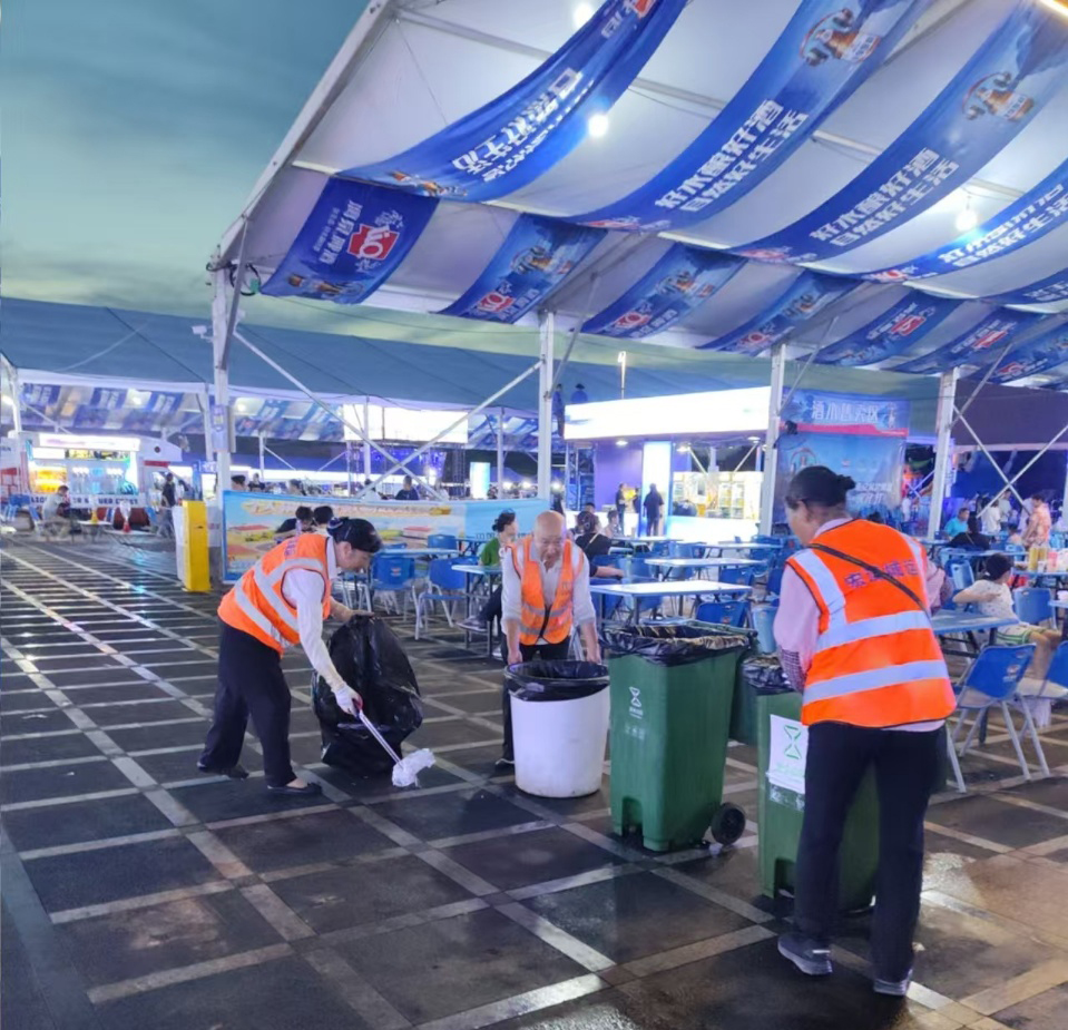垃圾清運(yùn):13天累計(jì)清理垃圾約2600袋(日均200袋),餐飲垃圾定點(diǎn)清運(yùn),煙花秀廢棄物散場(chǎng)1小時(shí)內(nèi)清理,無堆積滯留。